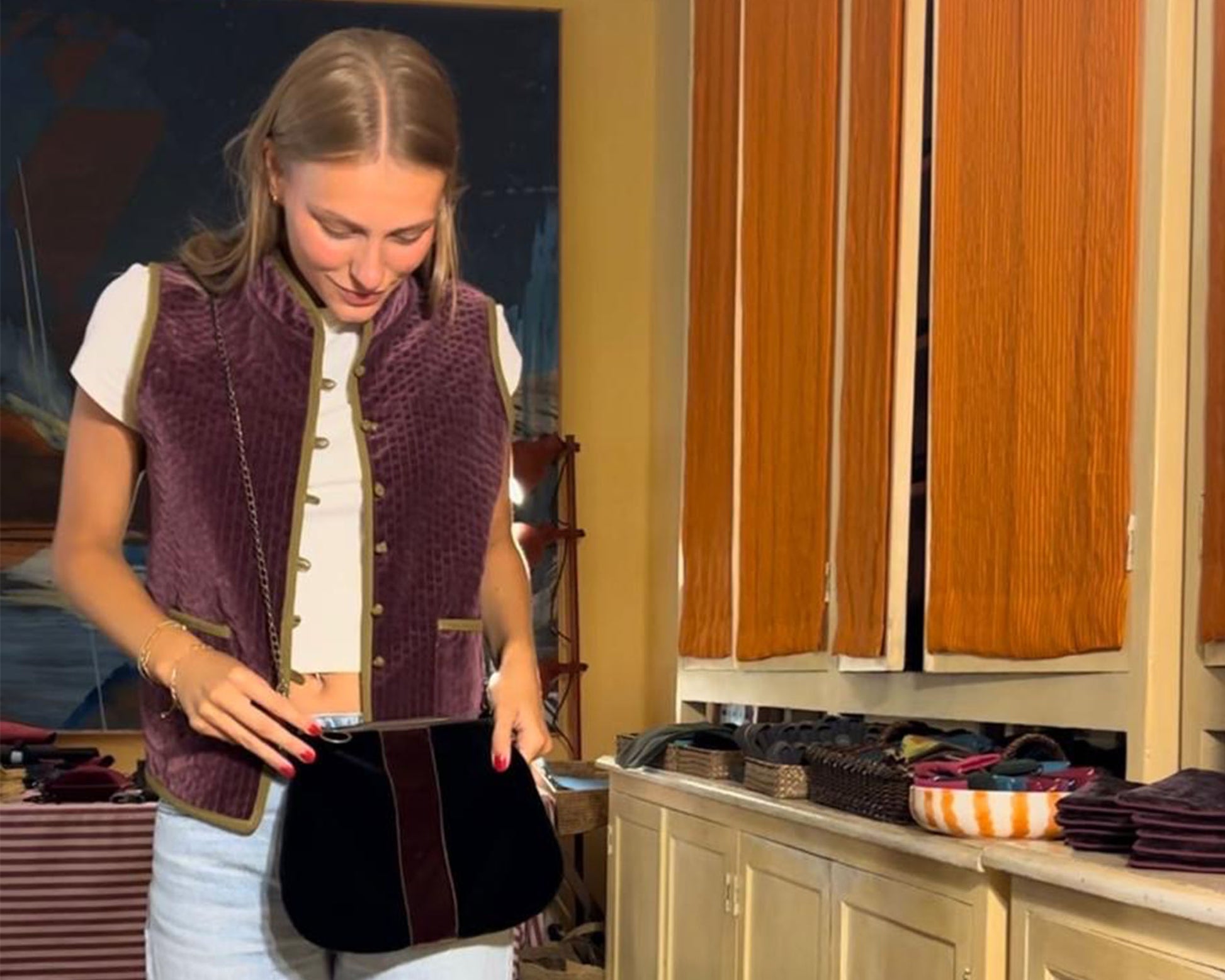 -Ogni borsa è foderata con un tessuto di cotone stampato a mano con la tecnica del block print, che rende ogni interno unico. Nota: le immagini degli interni sono indicative e potrebbero non corrispondere esattamente alla fodera della borsa scelta